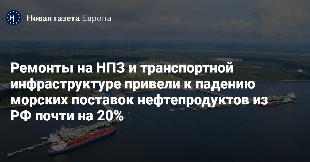 Внеплановые ремонты на НПЗ и транспортной инфраструктуре в России привели к падению морских поставок нефтепродуктов из России на 18% в сравнении с сентябрем прошлого года, пишет «Коммерсант» со ссылкой на обзор Центра ценовых индексов (ЦЦИ).
