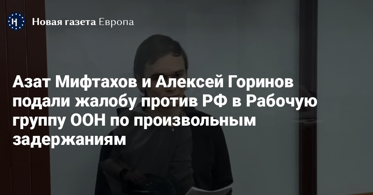 Осужденные по политическим делам математик Азат Мифтахов и бывший муниципальный депутат Алексей Горинов подали жалобу на незаконное преследование и лишение свободы в Рабочую группу ООН по произвольным задержаниям. Об этом сообщили в Центре защиты прав человека «Мемориал».