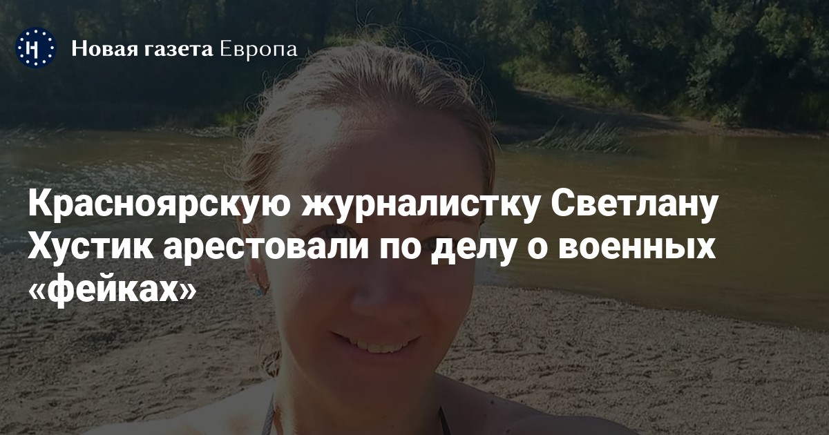 В Красноярске по подозрению в распространении «фейков» о российской армии (часть 1 статьи 207.3 УК) задержали журналистку Светлану Хустик, сообщили ТАСС, NGS24 и «Проспект мира».