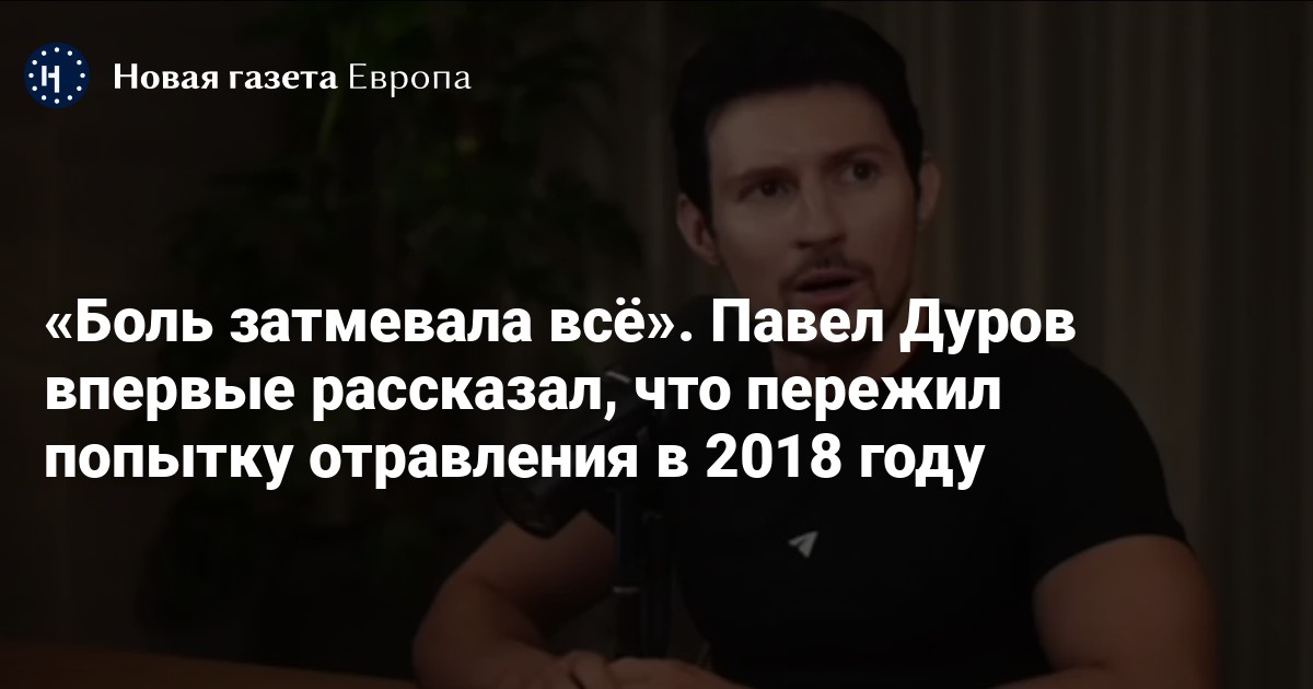 Основатель мессенджера Telegram Павел Дуров рассказал в интервью подкастеру Лексу Фридману, что пережил попытку отравления весной 2018 года.