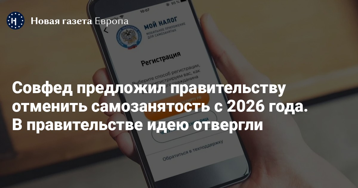 Правительство отклонило идею Совета Федерации о досрочном завершении экспериментального режима самозанятости в 2026 году. Об этом сообщило ТАСС со ссылкой на пресс-службу кабмина.