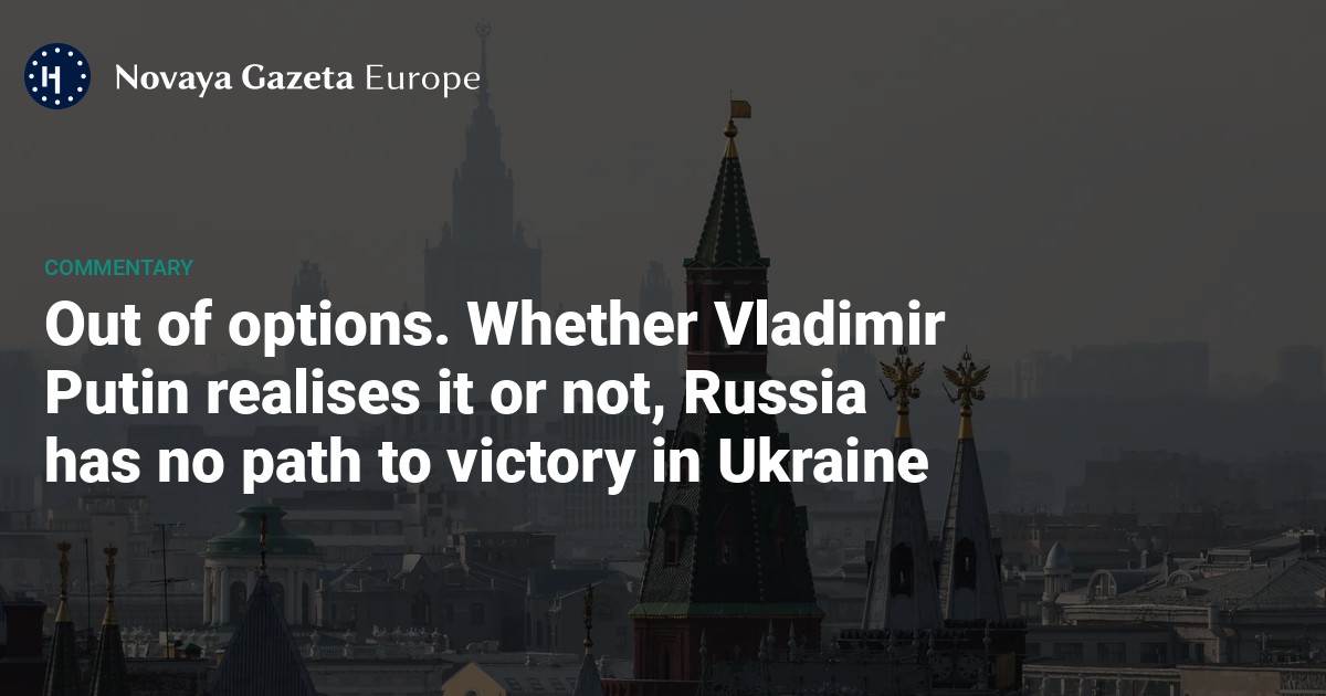 Of course, what happens next is an open question. Putin might well try to escalate, even though he has no good options for doing so. Or he might eventually agree to a ceasefire and try to dress it up as victory. But any end to the war — or to its active phase — in which Ukraine remains sovereign and independent will represent a loss for Putin. While territory matters, sovereignty is the key issue.