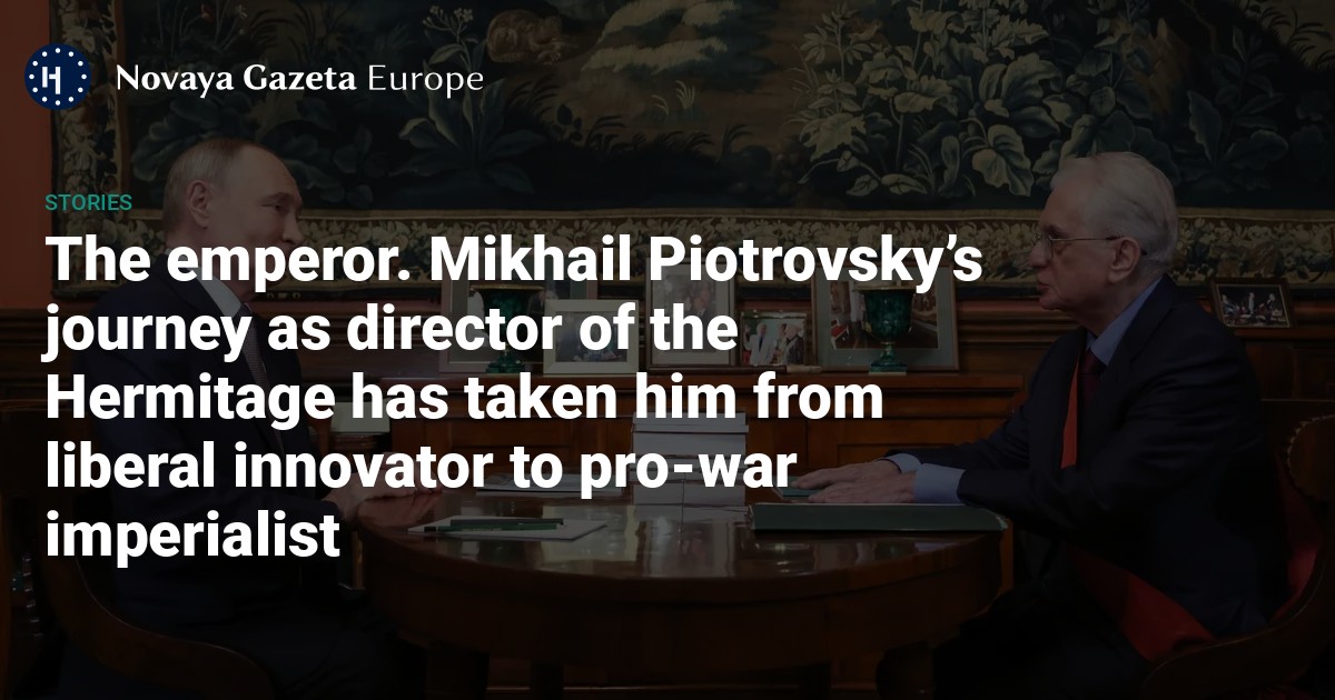Last month, the Russian government extended Mikhail Piotrovsky’s contract as Director of the State Hermitage Museum by another five years. Over the decades of his leadership, one of the world’s foremost museums has navigated several eras, and Piotrovsky himself has become an epoch-defining figure. We follow his journey from embodiment of European values to ardent supporter of the war in Ukraine.