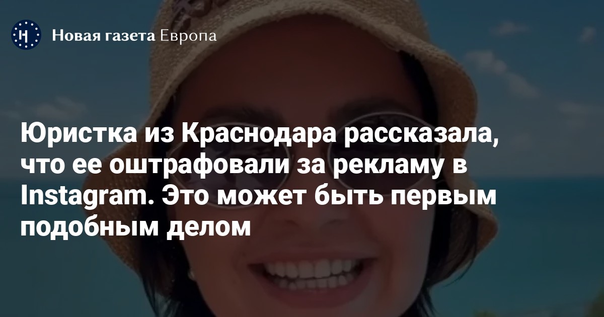 Юристка из Краснодара Евгения Тутушкина рассказала, что ее оштрафовали на 30 тысяч рублей за рекламу отеля в запрещенной в России соцсети Instagram. Об этом она сообщила РБК, а также телеграм-каналам Mash и SHOT.