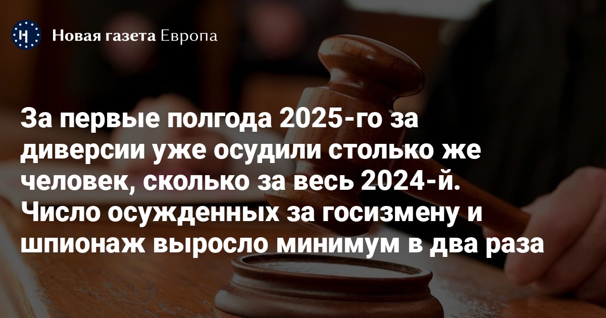 За госизмену, шпионаж и конфиденциальное сотрудничество с иностранцами за первые шесть месяцев 2025 года в российских судах приговоры получил 151 человек. Это в два раза больше, чем за такой же период предыдущего года, и максимум за последние 10 лет. Число осужденных за госизмену выросло в два раза, а за конфиденциальное сотрудничество — в 12 раз.