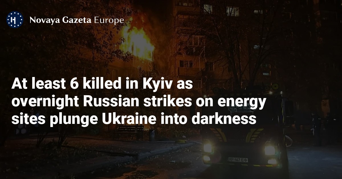 At least six people were killed in Kyiv and thousands across Ukraine were left without power as Russian aerial attacks targeted the country’s energy infrastructure overnight, Ukrainian authorities said on Wednesday.