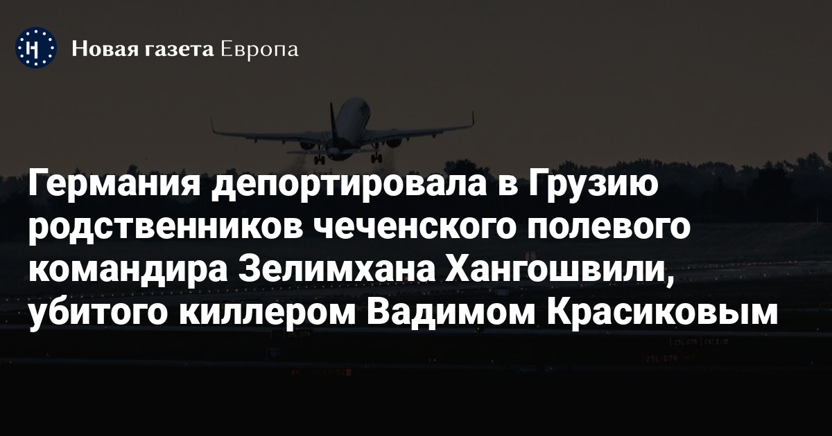 Германия депортировала в Грузию родственников бывшего чеченского полевого командира Зелимхана Хангошвили, которого в 2019 году застрелил в центре Берлина служащий ФСБ Вадим Красиков. Об этом пишут Deutsche Welle и «Эхо Кавказа» со ссылкой на вдову Хангошвили Манану Циатиеву.