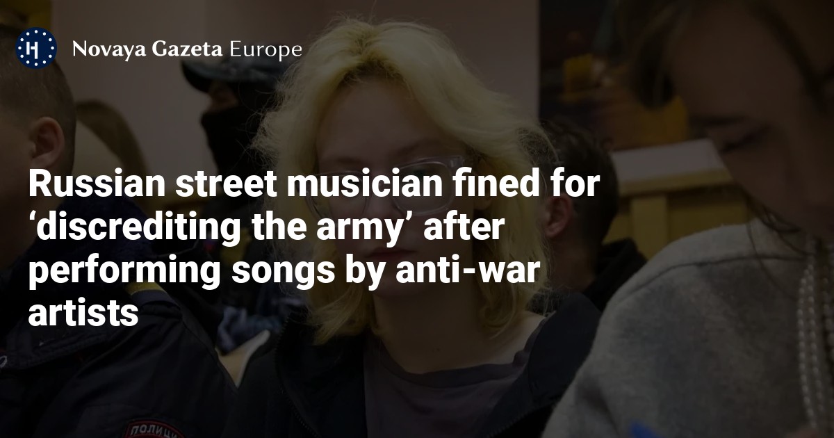 A Russian street musician who was arrested in St. Petersburg earlier this month for performing songs by exiled anti-war musicians was fined 30,000 rubles (€320) for “discrediting the army” on Tuesday, independent news outlet Mediazona has reported.