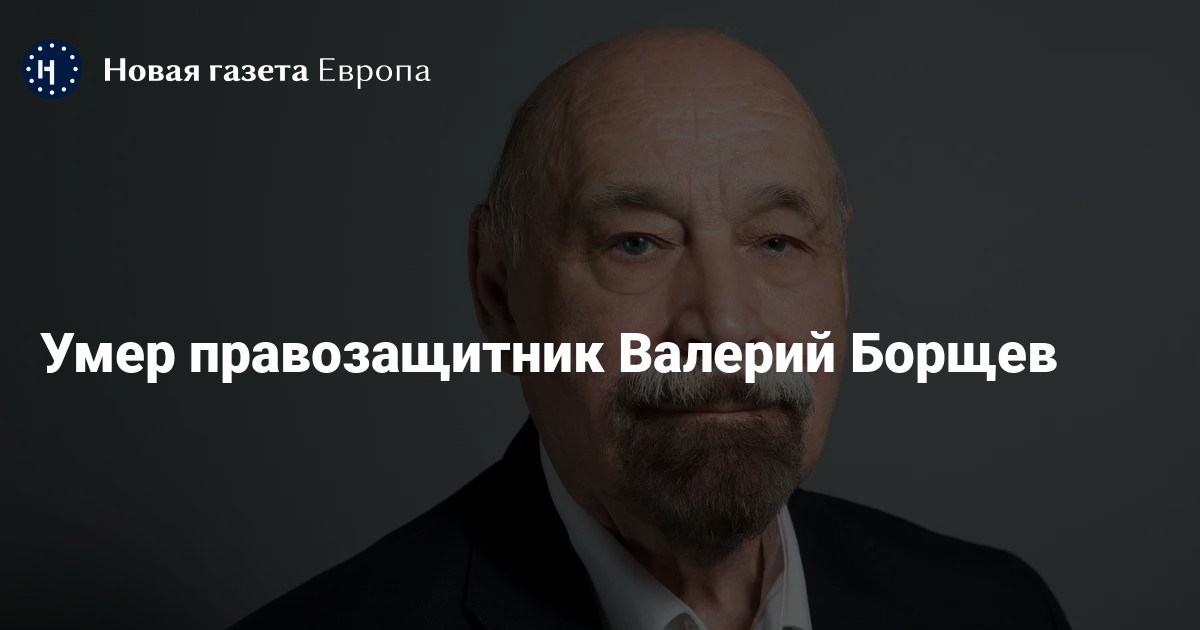 В возрасте 82 лет умер российский правозащитник, автор закона об общественном контроле за местами лишения свободы Валерий Борщев. Об этом сообщила журналистка Ева Меркачева.