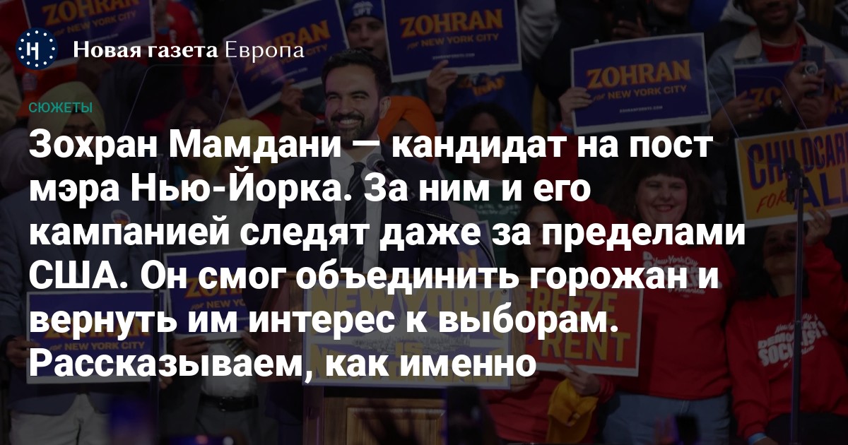 34-летний член Ассамблеи штата Нью-Йорк Зохран Мамдани попал в центр внимания американской прессы во время его предвыборной кампании на пост мэра Нью-Йорка. Стремительный рост молодого регионального депутата заинтересовал даже людей, которые не живут в США. Пока одни обвиняют его в антисемитизме и симпатиям к коммунизму, другие считают его гениальным кандидатом, у которого есть шансы стать успешным мэром. Выборы пройдут уже сегодня, 4 ноября. «Новая газета Европа» рассказывает о Мамдани и о том, как у него получилось собрать вокруг себя разные группы избирателей.