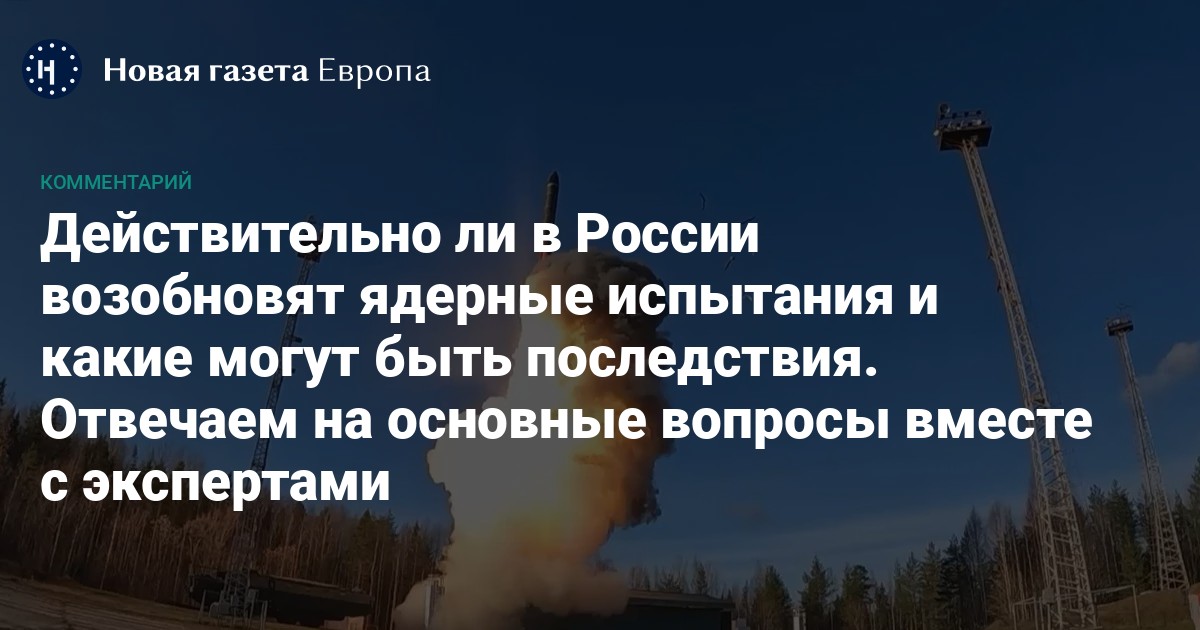 Эксперт по российской внешней и оборонной политике Павел Лузин отметил в разговоре с «Новой-Европа», что не будет удивлен, если ядерные испытания действительно возобновятся. По его словам, это все укладывается в российскую концепцию «эскалации для де-эскалации», в рамках которой «Россия должна продемонстрировать готовность и решимость применить ядерное оружие».