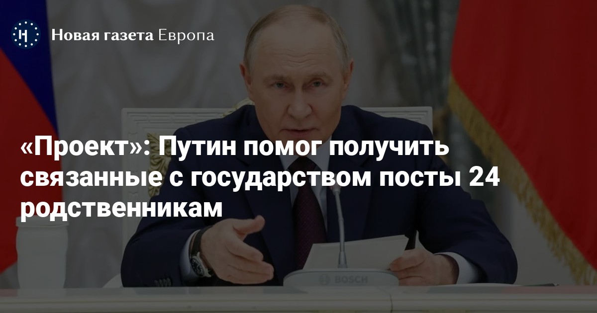 Владимир Путин помог как минимум 24 родственникам получить связанные с государством посты, выяснил «Проект».