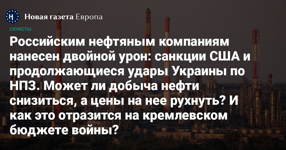 Российские нефтяники прямо сейчас решают, куда пристроить нефть, — и это один из самых глубоких кризисов отрасли, которая приносит примерно четверть доходов федерального бюджета. Оказалось, что значительные объемы сырья из России никому не нужны. На мировом рынке нельзя продать из-за того, что США в этом году последовательно ввели блокирующие санкции против четырех крупнейших экспортеров российских углеводородов. Но и на внутреннем рынке России эту нефть нельзя использовать — крупнейшие НПЗ стоят после атак дронов ВСУ. «Новая-Европа» выясняла, будут ли консервировать нефтяные скважины и как все это отразится на доходах бюджета и курсе рубля.