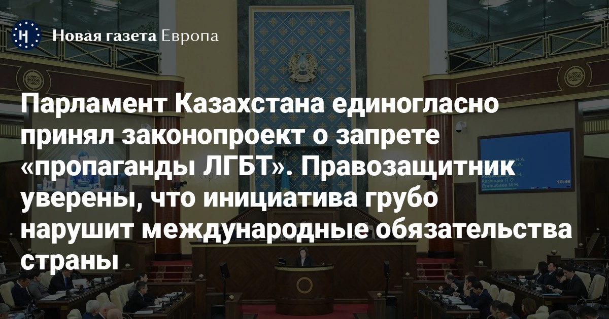 Нижняя палата парламента Казахстана — мажилис — единогласно одобрила законопроект о запрете «пропаганды ЛГБТ» и педофилии, сообщили в пресс-службе.
