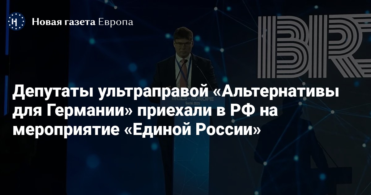 Депутаты ультраправой «Альтернативы для Германии» приехали в Сочи на симпозиум «БРИКС — Европа», организованный «Единой Россией». Об этом сообщают РБК и ТАСС.