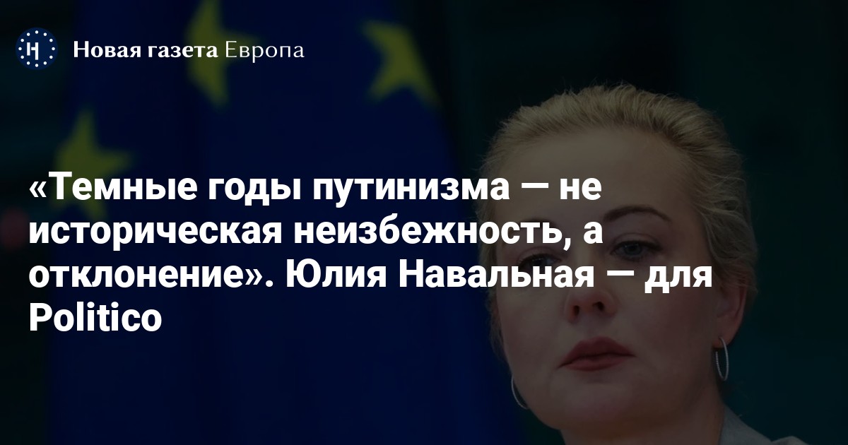 Россия — неотъемлемая часть Европы, и когда период правления Владимира Путина закончится, у страны будет шанс вернуться на европейский путь. Об этом написала политик Юлия Навальная в колонке для Politico.
