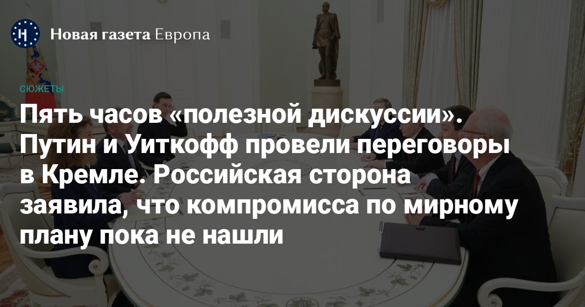В Москве завершилась встреча Владимира Путина со специальным представителем США Стивом Уиткоффом. Она длилась почти пять часов.