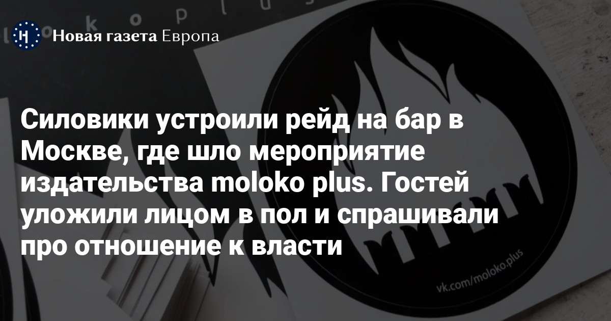 Накануне вечером силовики ворвались в бар «Невротик» на Яузской улице в Москве, где проходила вечеринка в честь 10-летия альманаха moloko plus. Об этом сообщили «Осторожно, новости» и «Коммерсант».
