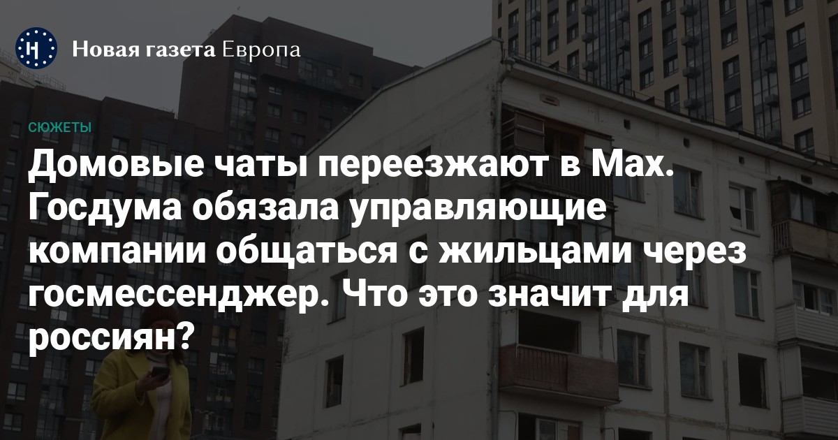 Таким образом, Госдума обязала перевести домовые чаты управляющих компаний именно в Max. Однако в законе это не прописано явно — указано только, что взаимодействие должно осуществляться через создаваемый сервис.