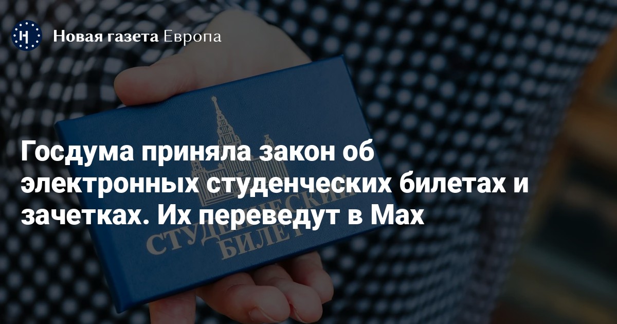 Госдума во втором и третьем чтении приняла закон о внедрении электронных студенческих билетов и зачетных книжек. Они будут доступны по QR-коду на «Госуслугах» и через мессенджер Max. Об этом пишет «Коммерсант».