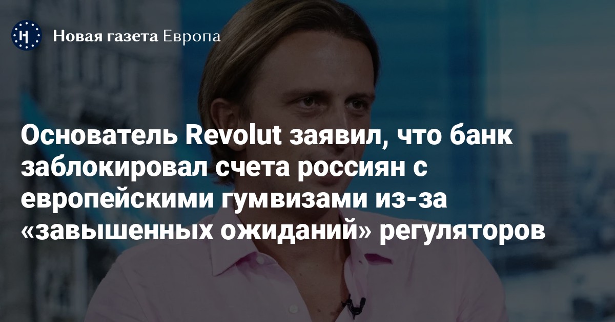 Revolut заблокировал счета живущим в Европе россиянам из-за «завышенных ожиданий» европейских регуляторов и давления с их стороны. Об этом основатель банка Николай Сторонский заявил в интервью журналистке Елизавете Осетинской.