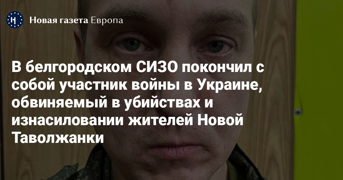 В СИЗО №3 Белгородской области покончил с собой военнослужащий Алексей Кострикин, обвиняемый в убийствах и изнасиловании в поселке Новая Таволжанка. Об этом пишет «Интерфакс» со ссылкой на пресс-службу регионального управления ФСИН.