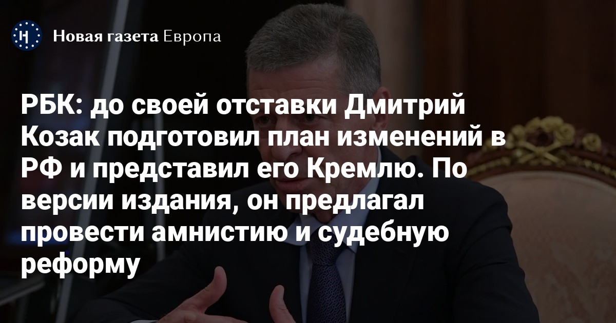 По словам одного из источников РБК, план в итоге был представлен в Кремле в 2025 году. Как пишет издание, для создания «значительно обновленной и привлекательной демократической модели развития России» Козак предлагал провести в РФ следующие изменения: