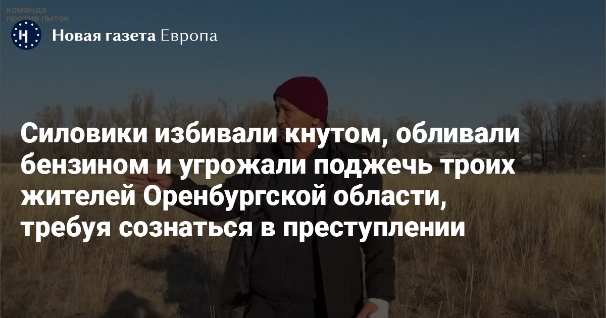Оренбургские силовики избивали кнутом, обливали бензином и угрожали поджечь троих жителей Оренбургской области, требуя сознаться в преступлении. Об этом сообщает «Команда против пыток».