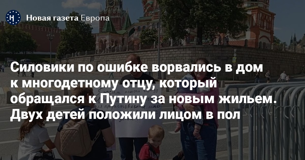Рано утром 23 декабря в Новосибирске силовики ворвались в дом многодетного отца Евгения Белозерова, который выходил на пикеты на Красную площадь и просил Владимира Путина выделить деньги на новое жилье. Об этом сам Белозеров рассказал изданию «Прецедент».
