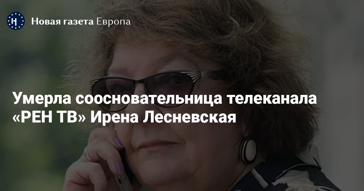 «Человек [Лесневская], чьим именем назван канал “РЕН”, который она когда то создала. Ирене Стефановне очень многим обязана я лично и мои коллеги по “Неделе”. И — все российское телевидение, для которого она так много сделала в своей жизни», — написала Максимовская в соцсетях.
