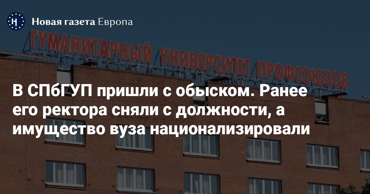 В октябре Арбитражный суд Петербурга и Ленобласти по иску Генпрокуратуры национализировал имущество Санкт-Петербургского гуманитарного университета профсоюзов.