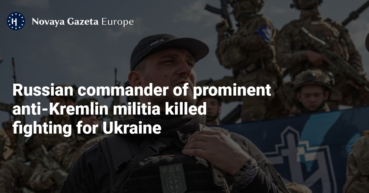 The founder and commander of the Russian Volunteer Corps (RVC), a far-right paramilitary unit of Russian citizens fighting alongside the Armed Forces of Ukraine (AFU), has been killed in action on the front line, the group announced on Saturday.