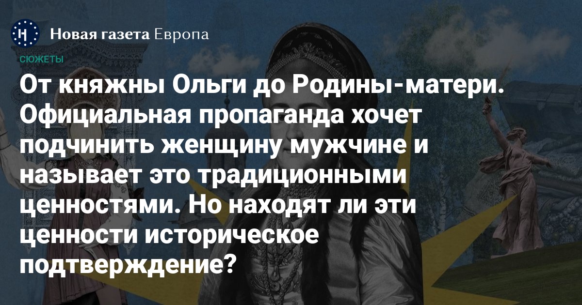 Сконструированные сейчас, в новейшее время, «традиционные ценности» и фантазии о них пропагандисты пытаются выдать за древние законы и установления. В действительности пропаганда не опирается ни на законодательную древнерусскую и средневековую традицию, ни на образы ярких исторических и культурных героинь или свидетельства о реальном быте. Пропагандистский нарратив стирает законодательную и культурную традицию, подменяя ее собственными фантазиями и частично переработанными идеями «Домостроя». Это обращение не к традиции, а к тому, что традицию нарушало.
