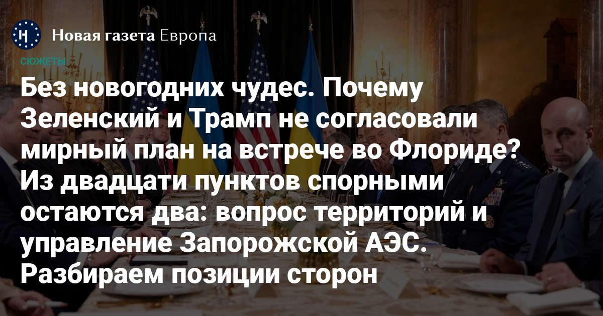 Самый конец 2025 года был отмечен новой попыткой президента США Дональда Трампа добиться девятого — по его собственным подсчетам — миротворческого успеха. 28 декабря глава Белого дома вначале позвонил Владимиру Путину, а потом встретился в своей флоридской резиденции с президентом Украины Владимиром Зеленским.