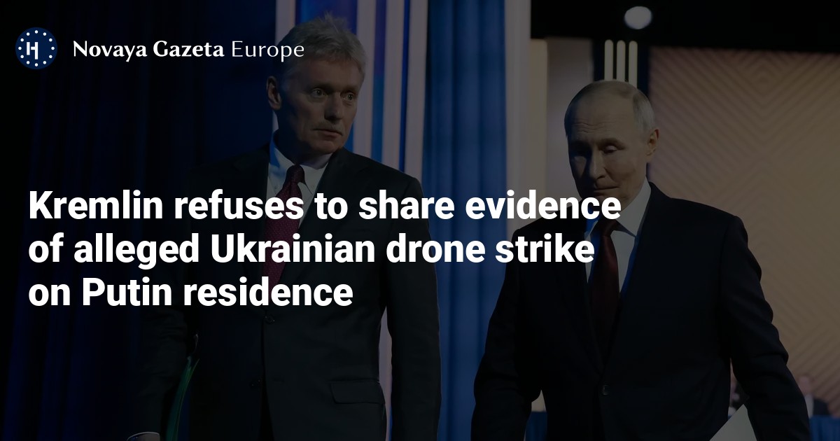 Kremlin spokesperson Dmitry Peskov told reporters on Tuesday that no evidence would be provided by the Russian government to substantiate the claim it made on Monday that Ukraine had launched a massive drone strike on Vladimir Putin’s residence at Valdai, in northwestern Russia’s Novgorod region.