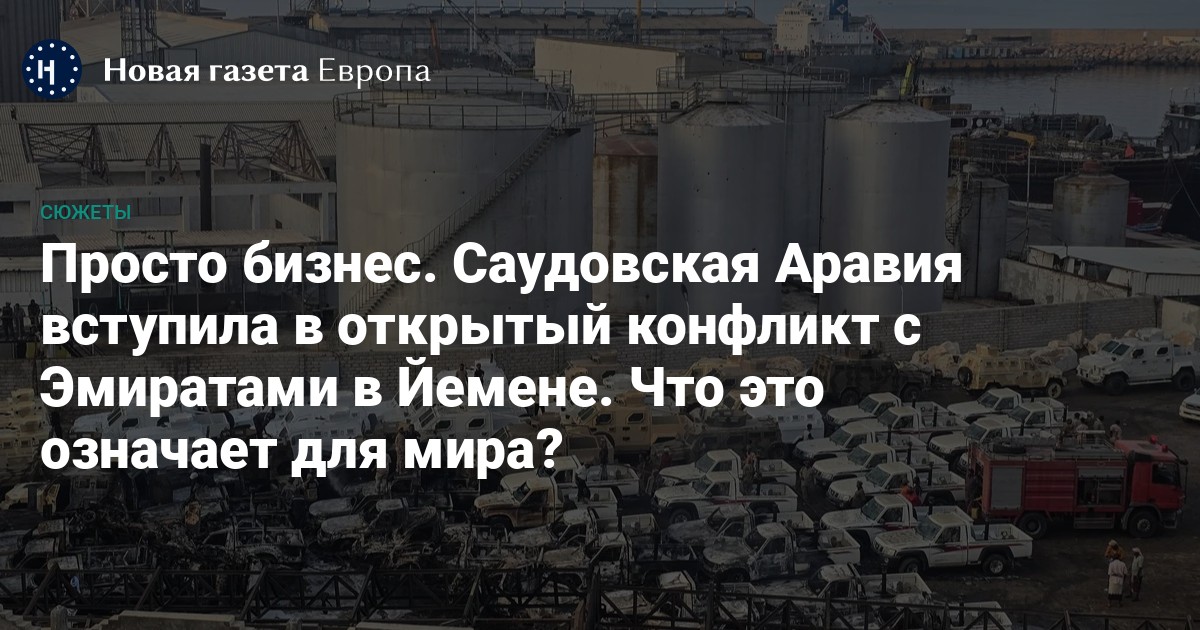 В условиях резкой эскалации давно тлеющего йеменского конфликта Саудовская Аравия нанесла авиаудары по порту Мукалла в йеменской провинции Хадрамаут. Целью удара объявлено оружие и военная техника, поставленные в Йемен Объединенными Арабскими Эмиратами.