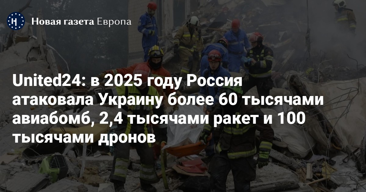 В 2025 году Россия запустила по Украине более 60 тысяч управляемых авиабомб, около 2400 ракет разных типов и более 100 тысяч беспилотников, подсчитал украинский проект United24.