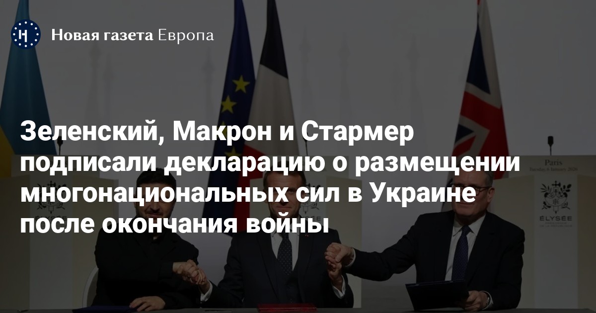 Президент Франции Эмманюэль Макрон, британский премьер-министр Кир Стармер и украинский лидер Владимир Зеленский подписали декларацию «Надежные гарантии безопасности для прочного и долговременного мира в Украине» во время саммита «коалиции желающих» в Париже. Об этом говорится в пресс-релизе, опубликованном на сайте Елисейского дворца.
