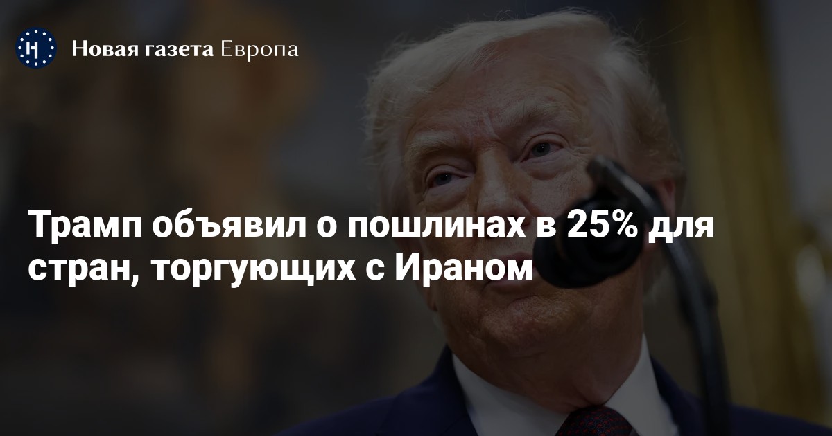 США вводят пошлины в размере 25% для стран, которые поддерживают торговые отношения с Ираном. Об этом глава Белого дома Дональд Трамп сообщил в соцсети Truth Social.