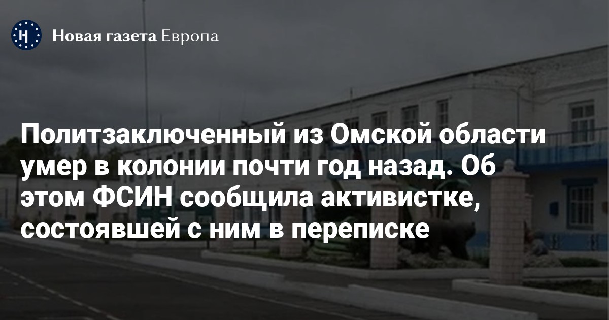 Политзаключенный из Омской области Роман Тюрин, четырежды осужденный за посты в соцсетях, умер в колонии почти год назад, 17 февраля 2025 года, сообщил «Мемориал».