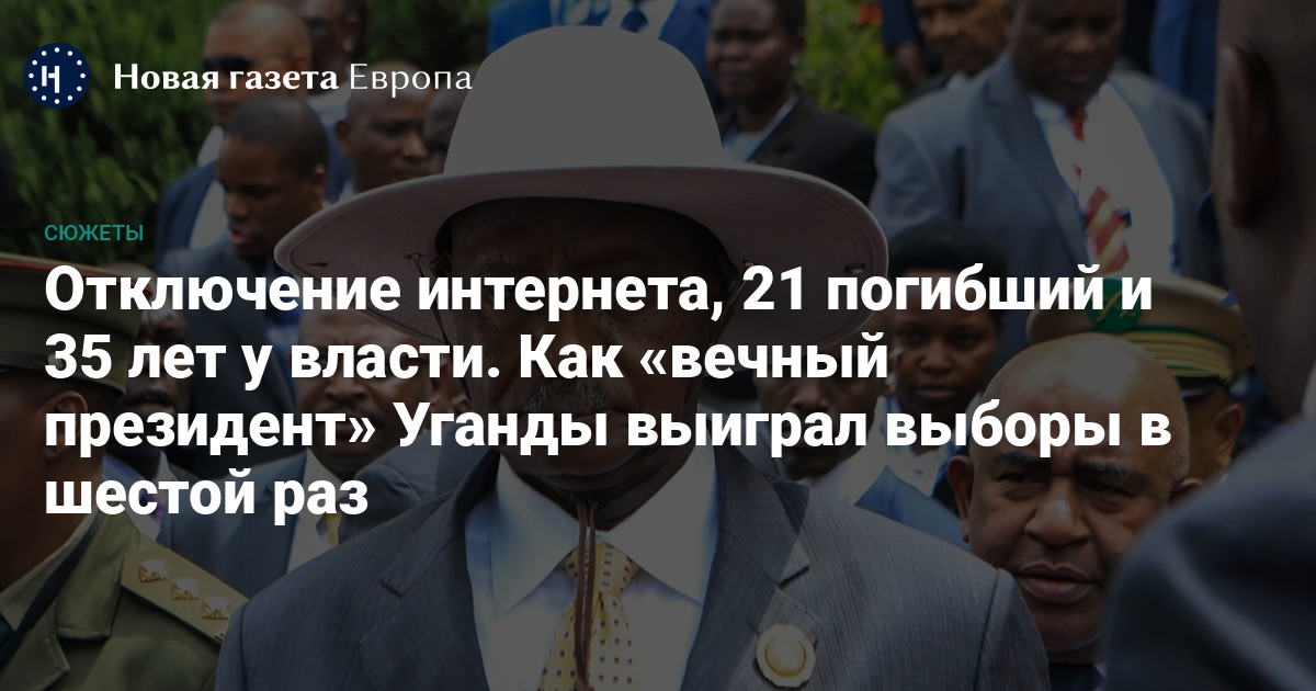 81-летний Йовери Мусевени в очередной раз переизбрался на пост президента Уганды. Он правит этой центральноафриканской страной с 1986 года. Мусевени не только побил рекорды постсоветских автократов, но и входит в топ-3 самых долго находящихся у власти современных президентов: дольше у власти лишь его коллеги из Камеруна и Экваториальной Гвинеи. Во время выборов в Уганде отключали интернет, убивали оппонентов и давили на оппозиционного кандидата.