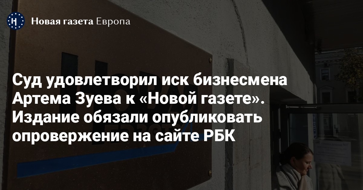 Зуев подал иск к «Новой газете» в Басманный районный суд Москвы, но тот в 2023 году в удовлетворении требований отказал. После этого бизнесмен подал апелляцию в Мосгорсуд, и тот встал на сторону предпринимателя.