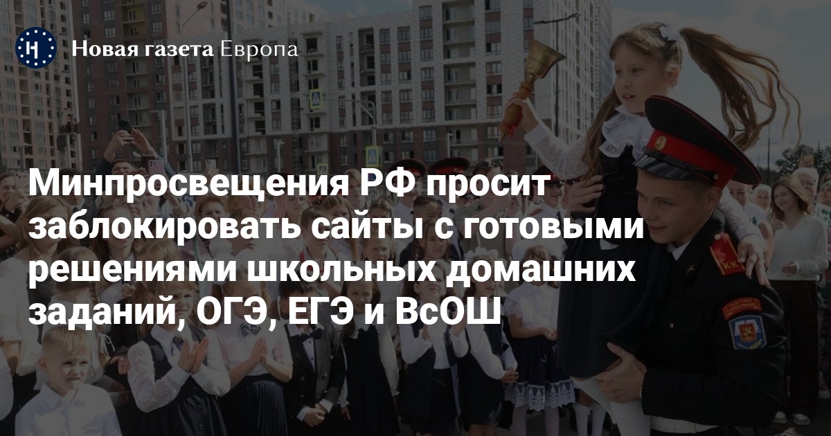 Минпросвящения РФ потребовало заблокировать сайты, на которых можно найти готовые решения домашних заданий, ОГЭ, ЕГЭ и ВсОШ. Таким образом, этот контент хотят приравнять к информации о способах самоубийства, рецептам изготовления наркотиков, призывам к массовым беспорядкам и «пропаганде ЛГБТ», пишет «Коммерсант».