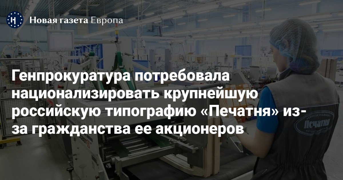 Генпрокуратура потребовала в судебном порядке аннулировать сделку по продаже 100% долей в уставном капитале крупнейшей российской типографии — ООО «Типография "Печатня"», пишет «Коммерсант» со ссылкой на источники.
