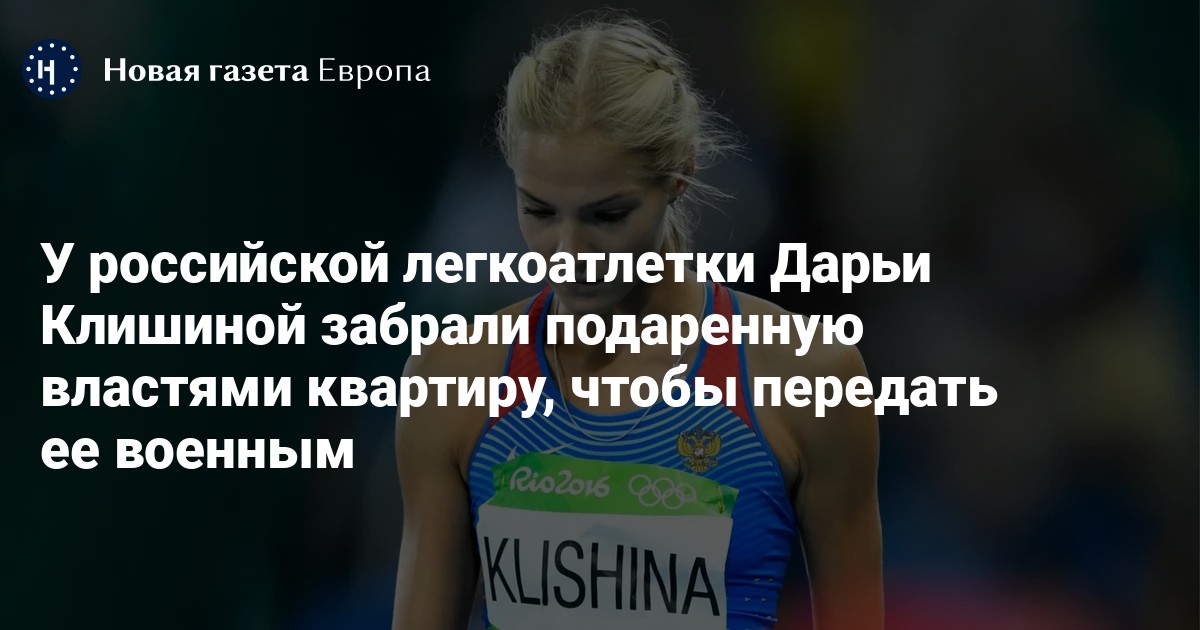 Российскую прыгунью в длину Дарью Клишину лишили квартиры в Твери, которую ей подарили власти города, и передали это жилье военному. Об этом спортсменка рассказала в интервью Вите Кравченко.