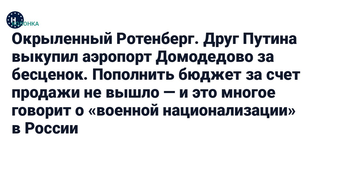 Во-первых, посмотрим, кто боролся за Домодедово. О том, что его хочет получить Ротенберг, бизнес-партнер последнего Александр Пономаренко сообщал еще десять лет назад. Хотя в начале 2025 года, как раз когда иск о национализации аэропорта ушел в суд, Ротенберг громко отрицал всякий интерес к Домодедово. Прошел год — и конкурс выиграл аэропорт Шереметьево, где Ротенберг — один из главных владельцев, и вообще крупнейший в стране аэропорт считается его вотчиной.