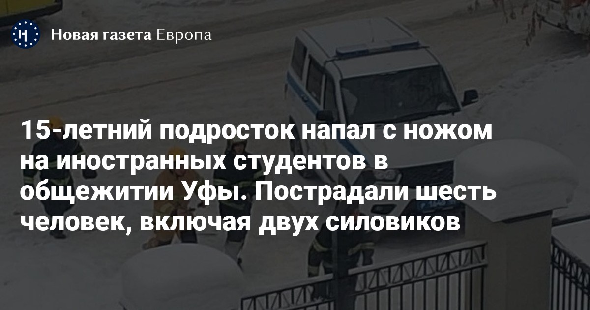 15 летний подросток, вооруженный ножом, напал на студенческое общежитие для иностранных студентов в Уфе. Возбуждено уголовное дело, сообщает ТАСС со ссылкой на СК.