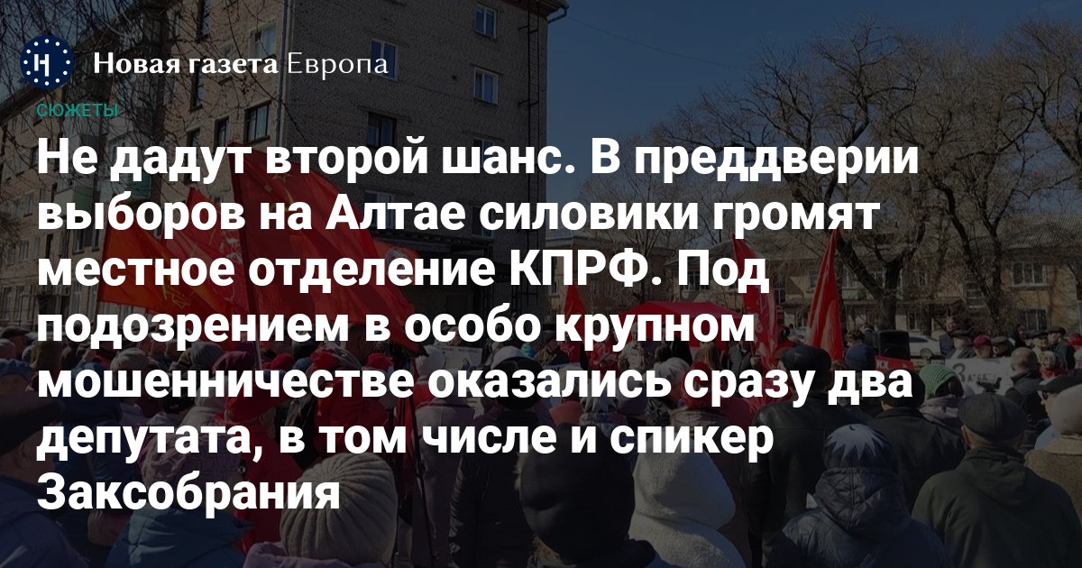 Как сообщают провластные телеграм-каналы, их подозревают в мошенничестве в особо крупном размере. По версии следствия, депутаты-коммунисты несколько лет назад фиктивно устроили своих сторонников на должности помощников депутатов, а деньги присвоили. «Новая-Европа» разбиралась, что могло стать причиной крупного политического скандала в Алтайском крае, а также что сами коммунисты считают причиной охоты на их однопартийцев.