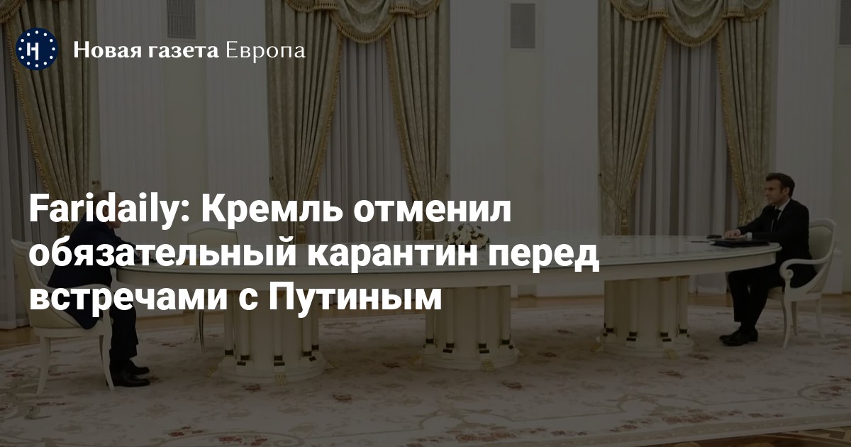 Faridaily: Кремль отменил обязательный карантин перед встречами с Путиным
