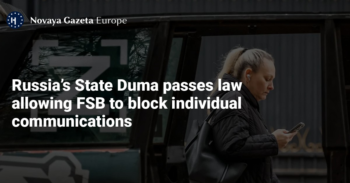 Russia’s State Duma has passed a bill compelling telecom operators to disconnect individual customers from both mobile phones and internet access upon instruction from the Federal Security Service (FSB), Russian news agency TASS reported on Tuesday.